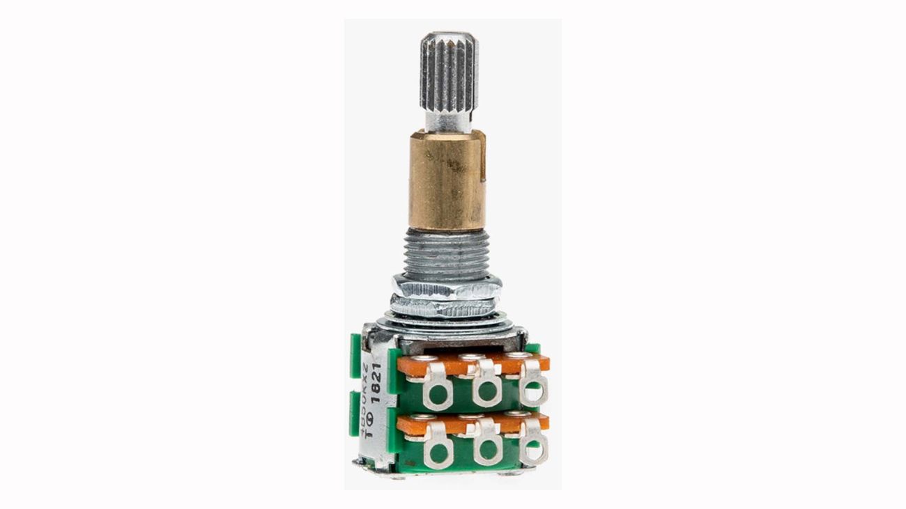 High Quality 25k stacked pot. Mini-body. Split, knurled shaft. For OBP-1 EQ controls