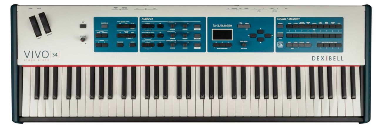 VIVO S4 je vybaveno 73 klávesovou (třísenzorovou) Hammer Action klaviaturou a sdílí hlavní vlastnosti s ostatními modely VIVO S10L, S10, S8, S8M a SX8: