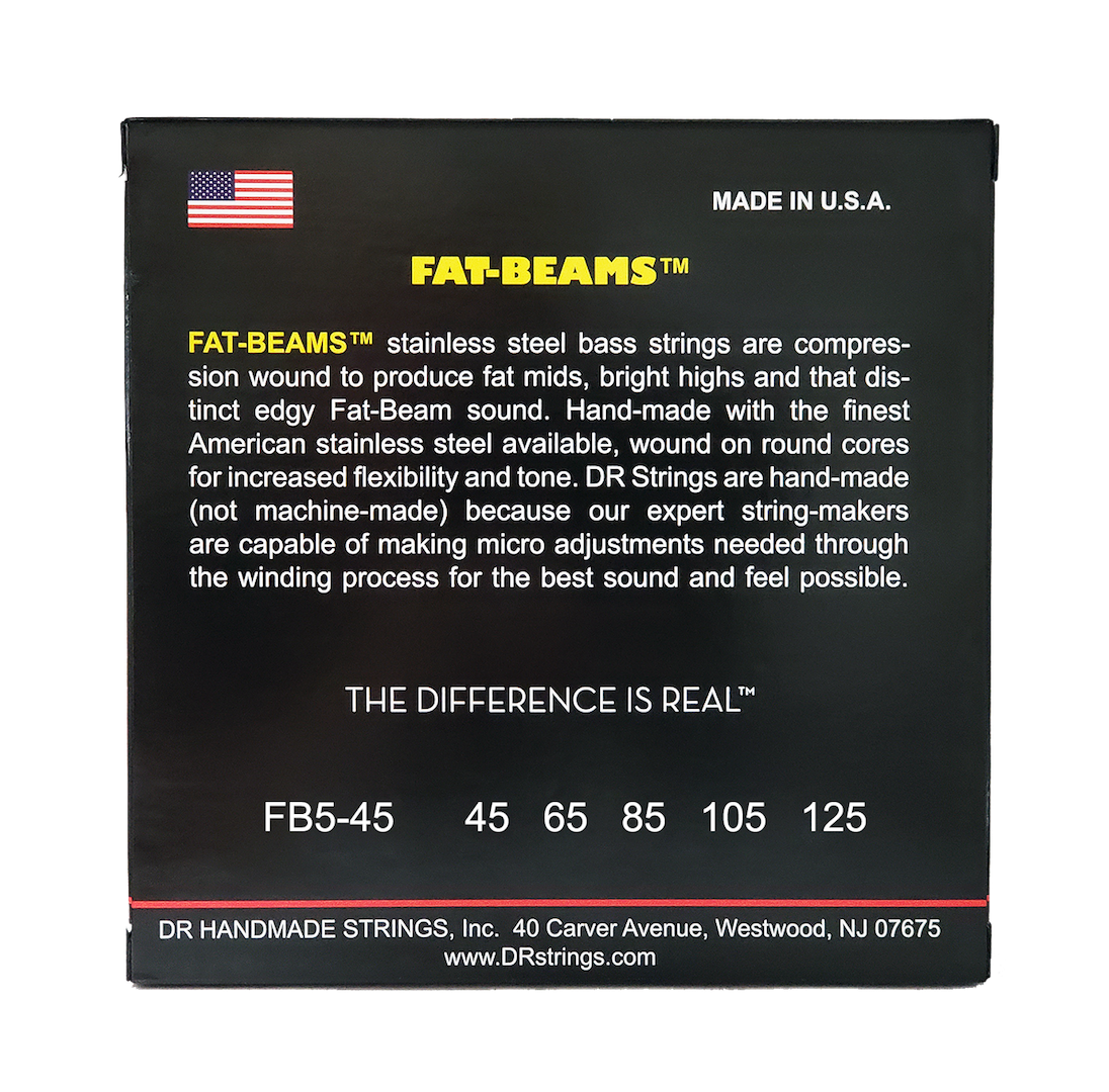 Basové struny FAT-BEAMS™ kombinují vinutí z nejlepší americké nerezové oceli a kulaté jádro, ale jsou vyráběny pomalejším procesem vinutí s vysokou kompresí, aby se dosáhlo výraznějších středů, jasných výšek a supertlustých spodků. Když je potřeba, produkují obecně plnější zvuk s pevným průrazem.