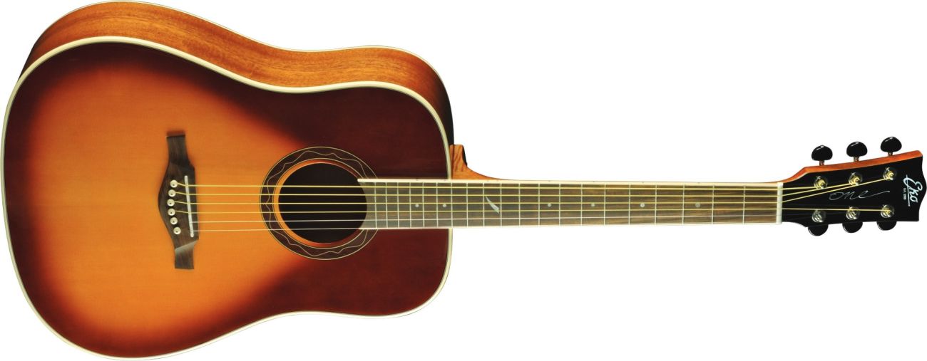 Kytara One D má dobře známé vlastnosti: 43 mm nultý pražec, 54 mm rozteč na kobylce a 650 mm menzuru, smrkový top a mahagonové luby a zadní stěna, kobylka a hmatník z roupany. Tyhle vlastnosti, přesně podle standardů Eko, jsou dobré známé všem kytaristům
