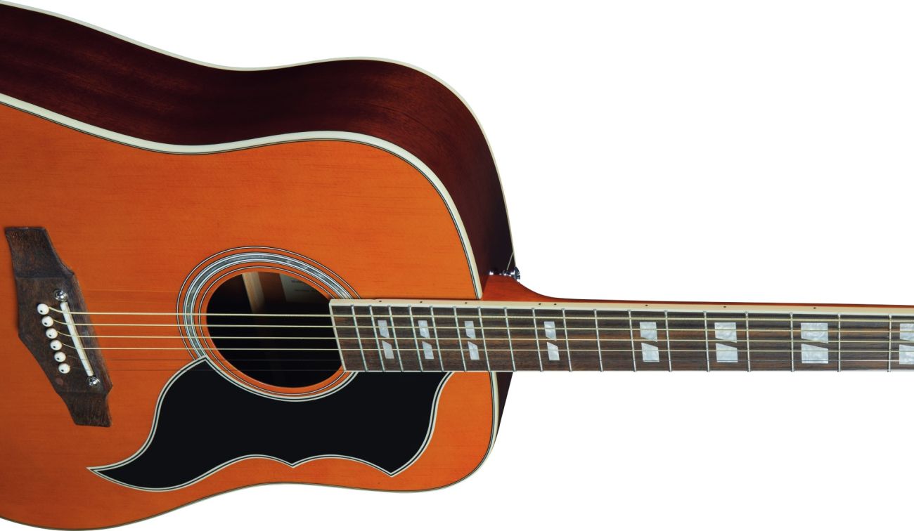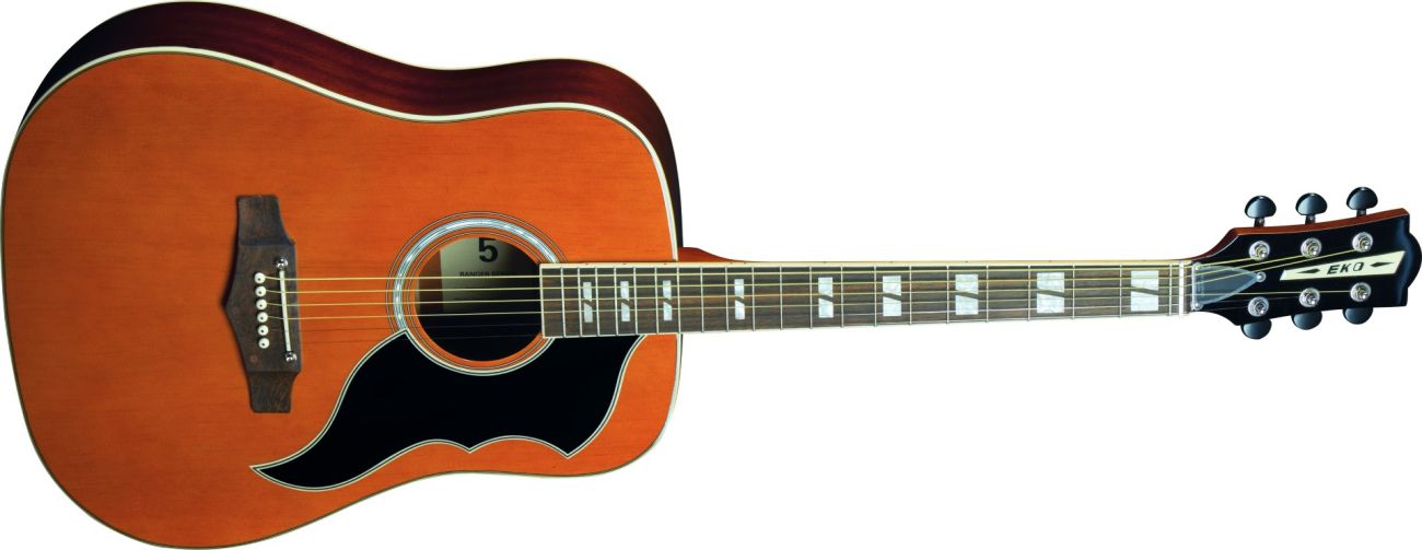 Eko Guitars pokračují v tradici slavných nástrojů Ranger ve své řadě Vintage Reissue, která transformuje několik prvků původních modelů, jako jsou šroubovaný krk, nastavitelná hliníková kobylka, nultý pražec a obdélníkové značky poloh. Nové Ranger XII VR jsou technicky inovované, ale zachovávají si stejnou kombinaci dřev s mahagonem na zadní desku a luby a smrkem na vrchní desku. Retro vzhled díky přepracovanému pickguardu, který si zachovává typický tvar z minulosti. První edice kytar nás zanese zpět do roku 1962, kdy se Eko rozhodli vyrábět sérii folkových kytar vycházejících z populárního tvaru Dreadnought, který byl tehdy v Americe v módě. První šestistrunná kytara se jmenovala J54 a díky své hratelnosti a ceně zaznamenala okamžitý úspěch. Dostupné barvy: Natural Top Stained, Honey Burst.