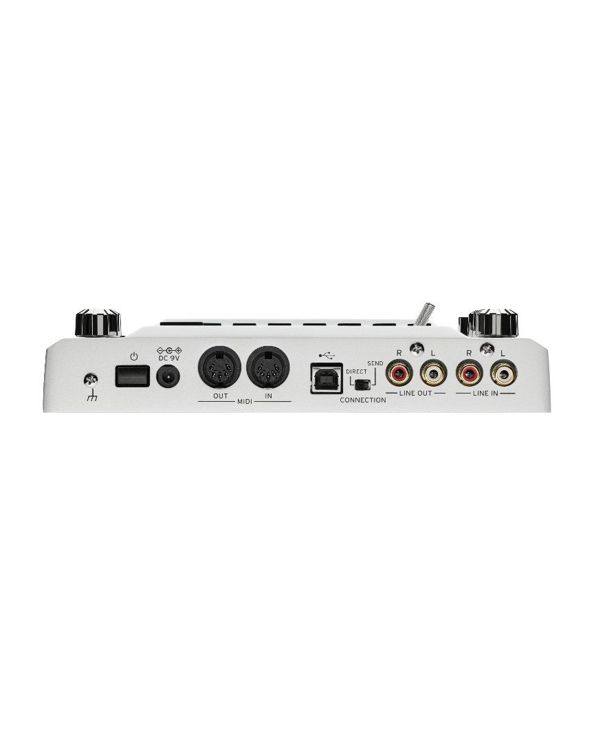 Samostatný high-impedance vstup umožňuje přímé připojení elektrické kytary nebo baskytary bez potřeby dodatečného hardwaru. Objevujte zvukové textury jako ambientní náběhy, rytmickou modulaci, časově založené glitch efekty či rozsáhlé reverberované zvukové krajiny – vše tvarované jednoduchým ovládáním prsty.