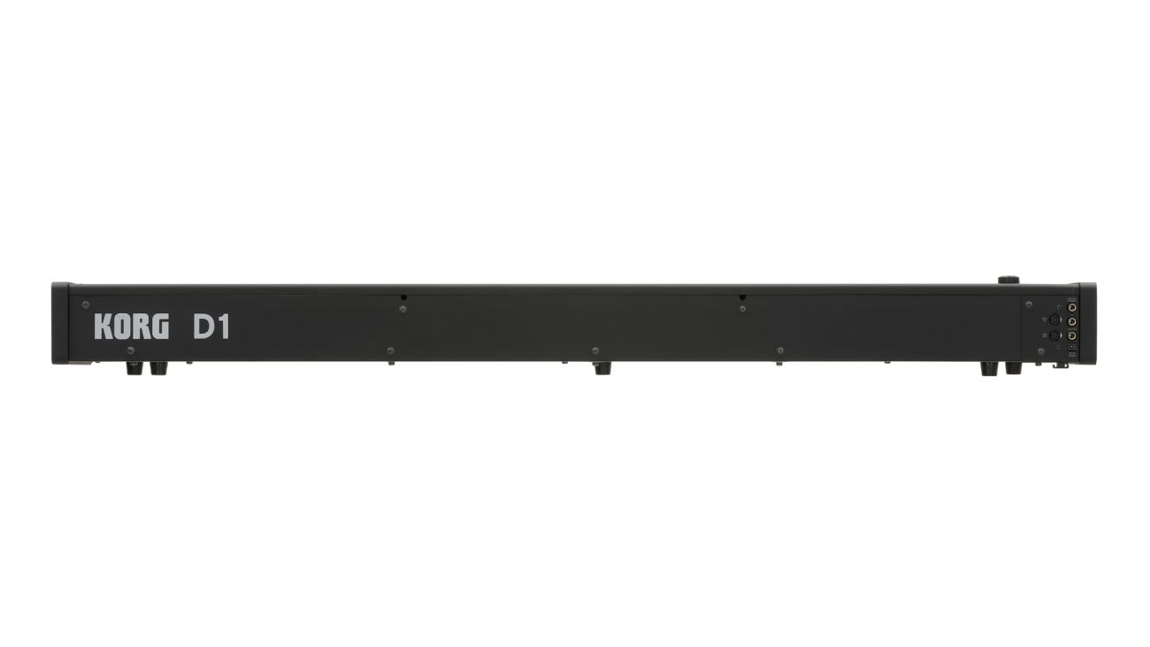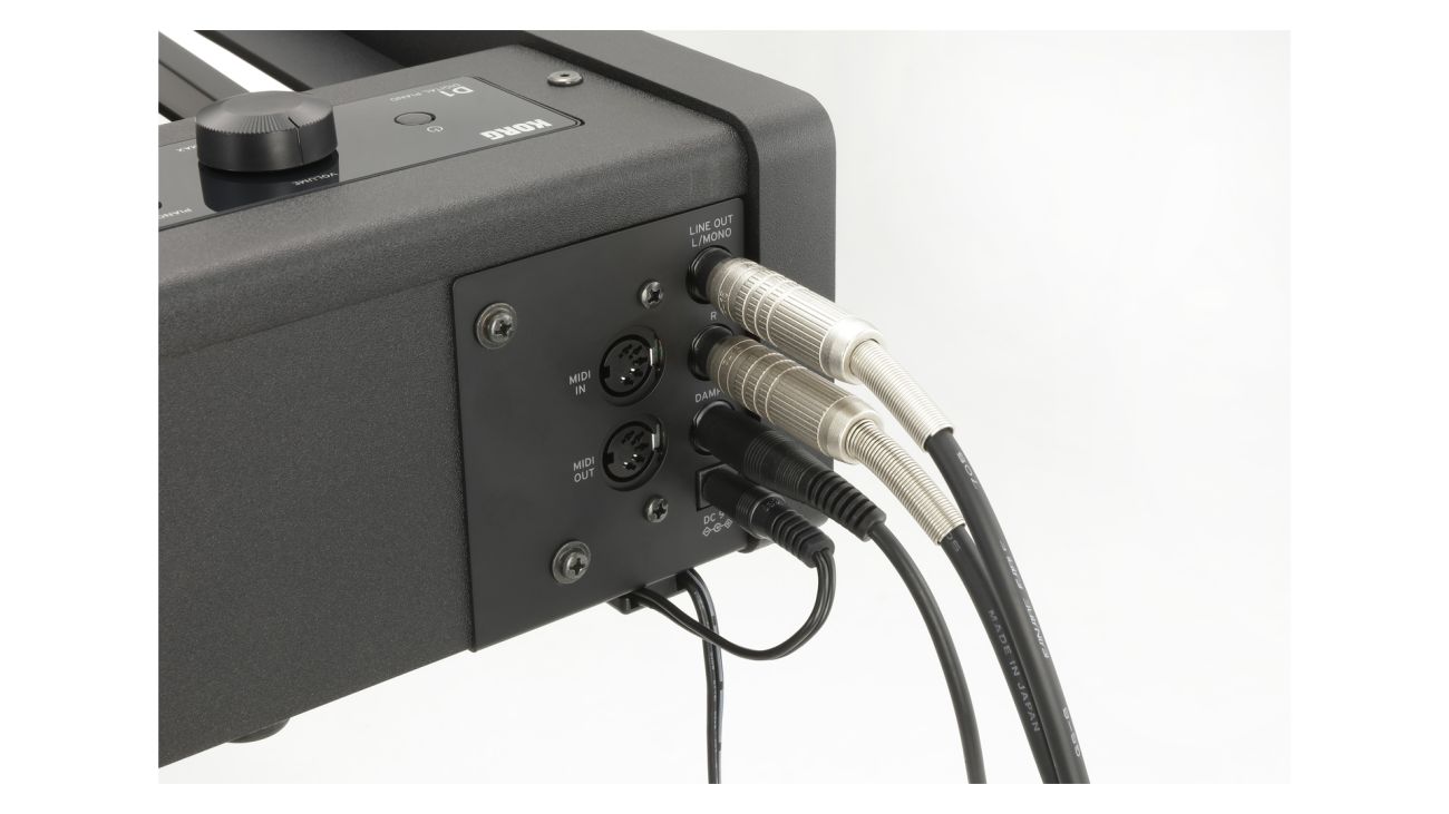 Pro připojení dalších zařízení nabízí D1 nezbytné výstupy. Sem patří standardní LINE OUT pro přímé připojení zesilovače nebo nahrávacích zařízení. K dispozici jsou taky konektory MIDI IN/OUT, přes které se lze připojit na MIDI rozhraní vašeho počítače a používat pak D1 jako MIDI keyboard nebo jako klávesový zvukový modul.