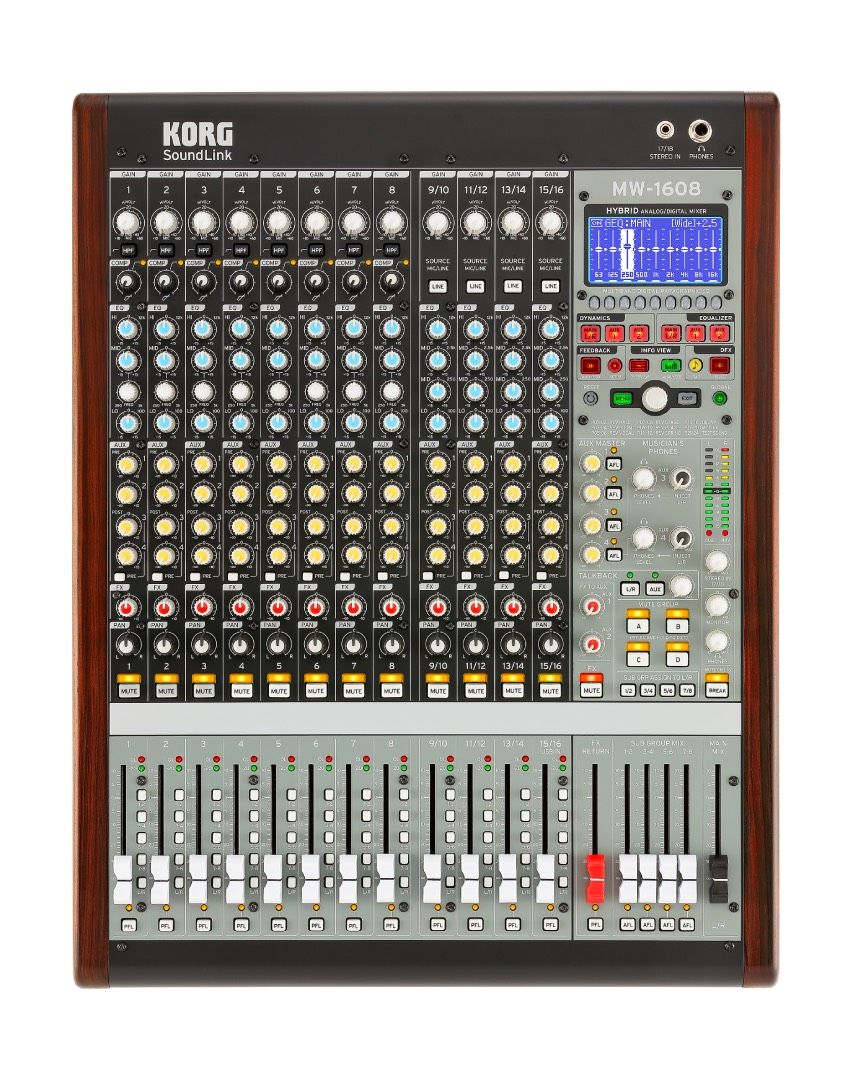 KORG spolupracoval na vývoji mixů řady MW1608 / 2408 s legendárním týmem Grega Mackieho a Petera Wattse. Vytvořil hybridní digitálně-analogové mini-konzoly, které dělají kreativní mix jednoduchým. Oba 24- a 16-kanálové modely vám poskytnou okamžitou kontrolu jako při analogu, takže rychle zvládnete i ty nejneočakávanější situace, které Vás mohou překvapit při live mixu. Nabízejí ohromující kvalitu zvuku, více na hudebníka orientovaných funkcí, jako konkurence a špičkovou digitální techniku, všude tam, kde to je potřeba.