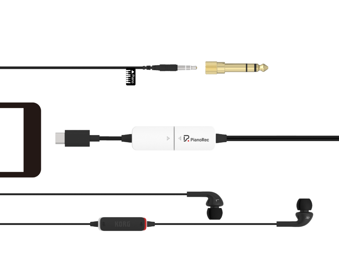 Nepotřebujete žádná další zařízení* Stačí připojit PianoRec k digitálnímu pianu a smartphonu a můžete začít nahrávat. Komplikované zapojení nebo nastavení jsou minulostí.