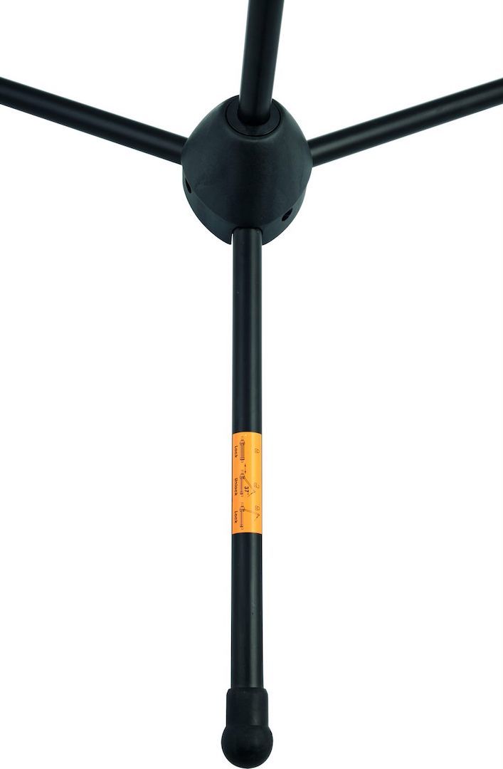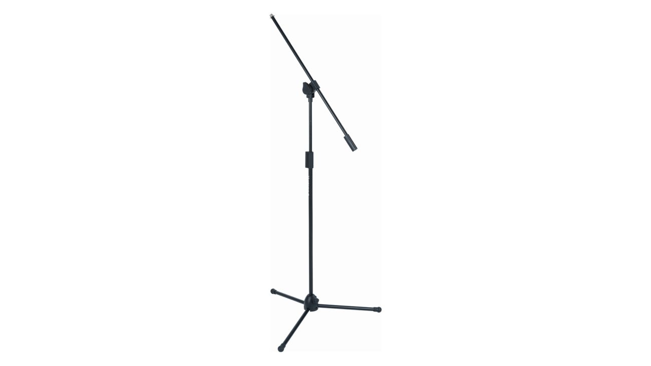 Standardní mikrofonní stojan s výsuvným ramenem. Kloub výsuvného ramene je vyroben z ABS, kompozitního materiálu, který se vyznačuje vysokou odolností proti nárazům a opotřebení. Nastavení sklonu a hloubky výsuvného ramene se provádí současně pomocí jediného ergonomického knoflíku ve tvaru kapky potaženého protiskluzovým materiálem, který zajišťuje snadné, rychlé a bezpečné zajištění. Trojnohá základna typu „IN-SYNC“: jedna z nohou funguje jako skutečná zarážka a umožňuje velmi praktické a rychlé upevnění tyče, čímž se zabrání ztrátě knoflíků, šroubů nebo jiných pohyblivých součástí, které se obvykle používají pro tento typ nastavení.