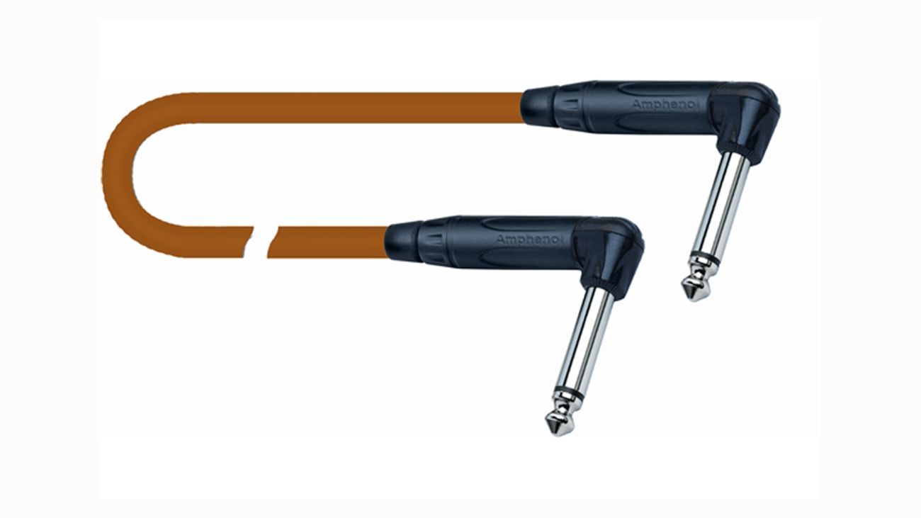 Propojovací kabel pedálu (délka 0,2 m) s monofonními 6,3 mm úhlovými konektory jack Amphenol ACPMRB a oranžovým kabelem Vitamina-C (průměr 6,8 mm).
