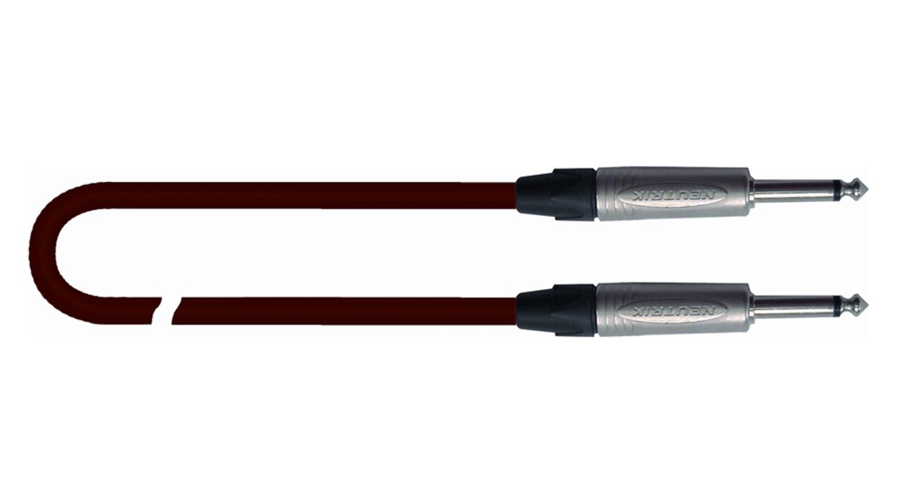 Nástrojový kabel, Neutrik NP2X mono 6.3 mm jacky a cihlově červený QS PVC kabel (6,8 mm průměr, postříbřený měděný vodič).