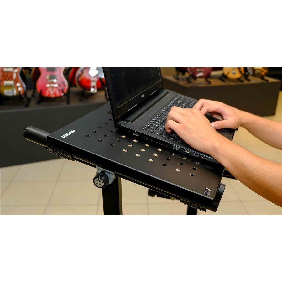 Stojan Quik Lok TOP 001 lze použít také ve spojení s kolečkovým stojanem QL 400, který umožňuje větší mobilitu a snadnou přepravu zařízení. Jeho univerzálnost umožňuje přizpůsobit jej vašim potřebám, ať už jde o umístění kláves, efektů, syntezátorů nebo jiného příslušenství.