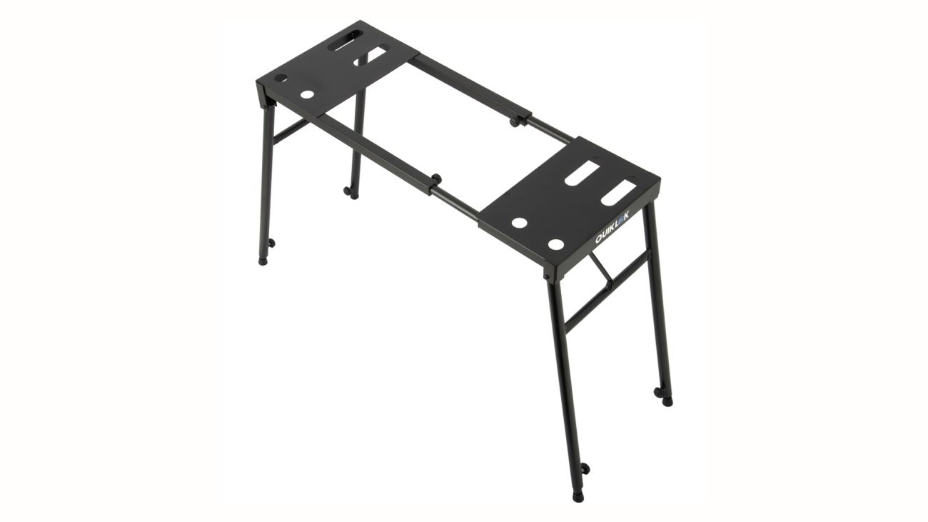 Přenosný, těžký, výškově a šířkově nastavitelný stojan se sklopnými nohami.