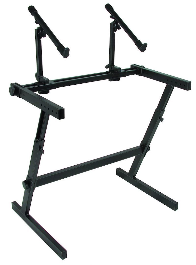 Dvoupatrový klávesový stojan typu "Z" s plně nastavitelným druhým patrem.