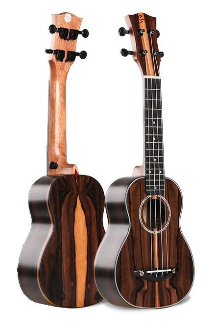 Sopránové ukulele Smiger GKS 100 na první pohled zaujme svým neotřelým designem, na kterém se podílí především exotické dřevo ziricote, z něhož je vyroben celý korpus nástroje. Ten je doplněn mahagonovým krkem s palisandrovým hmatníkem a strunami značky Aquila. Tato kombinace zaručuje mohutný a přesto velmi konkrétní zvuk, který je mezi hráči na ukulele tak vyhledávaný.